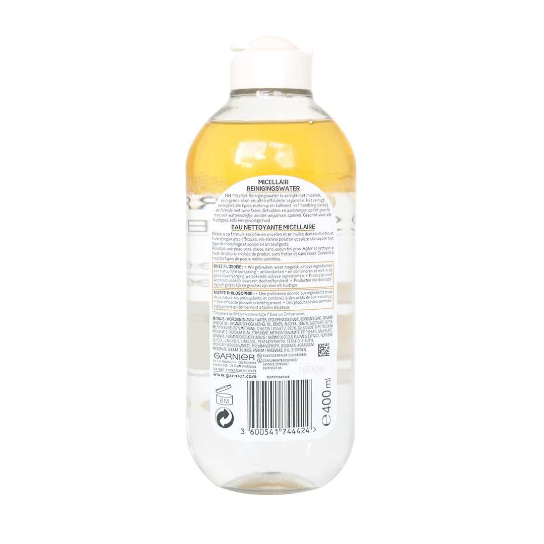 GARNIER Skin Active - Biphase Micellaire - Tout-en-1 - Nettoie, Démaquille & Apaise - Visage, Yeux, Lèvres - Enrichie En Micelles & Huiles - Vegan & Cruelty Free - Tous Types de Peaux - 400 m
